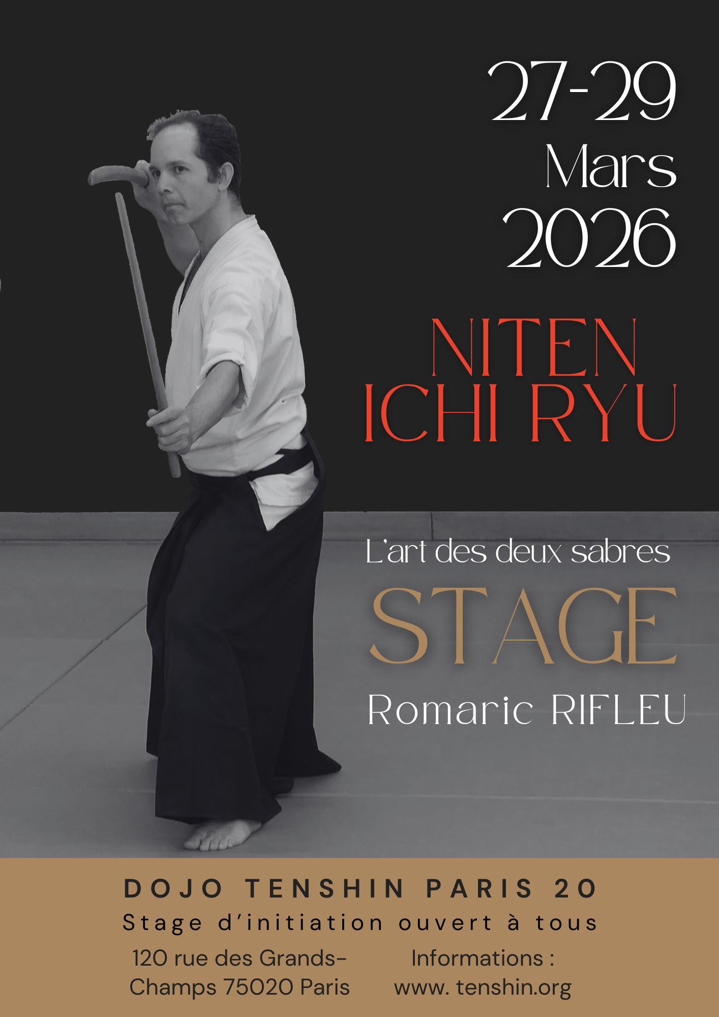 Lieu : Dojo Tenshin, 120 rue des Grands-Champs, 75020 Paris. Métro ligne 9, station Maraîchers.